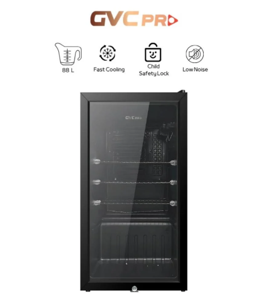 ثلاجة جي في سي برو باب زجاجي شفاف — 88 لتر (3.1 قدم) — إضاءة داخلية وقفل أمان — تبريد هادئ(GVRG-155-2)